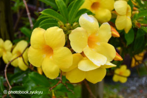 通りには、オオバナアリアケカズラの黄色い花が咲いていました。